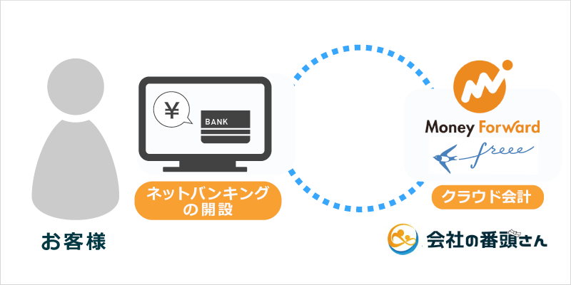 クラウド会計と相性がよく、24時間対応可能なネットバンキングを導入していただきます。 その際、振込最終承認は付与していただかない形をとっております。 |